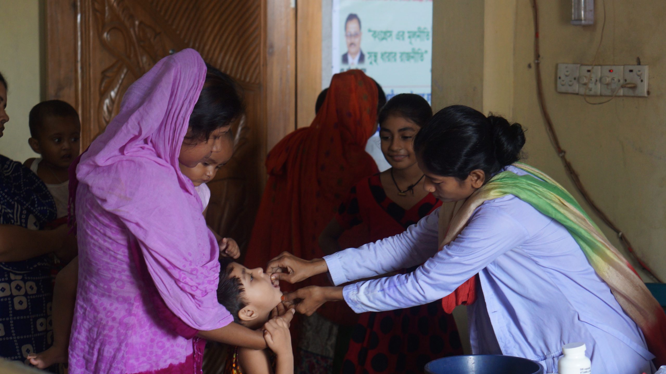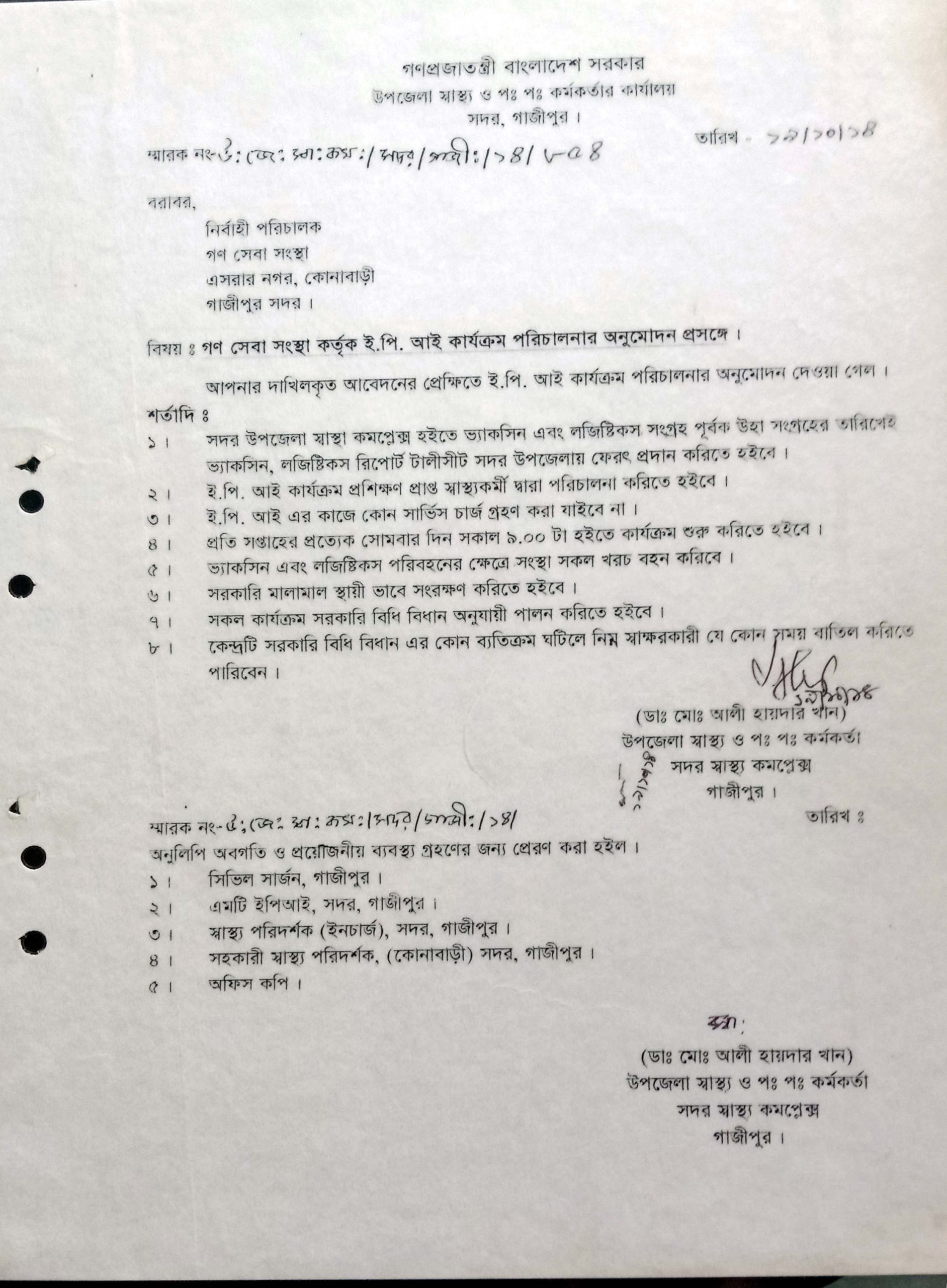 গণসেবা সংস্থা কর্তৃক আয়োজিত টিকাদান কর্মসূচিতে টিকা দান করছেন সংস্থার সাস্থকর্মী নার্গিস আক্তার ও হেনস্থার সদস্য মোঃ খায়রুল বাশার হিরন