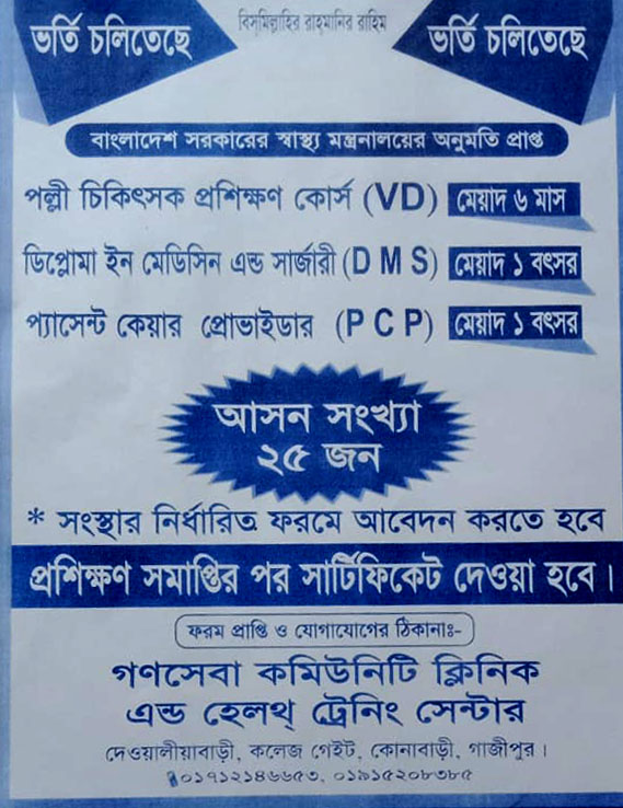 Gonosheba Sangstha (GSS) is a registered public Charitable Organization. Established in 2001, it is one of the oldest non-governmental, non-profit, and national-level organizations in Bangladesh. GSS is a people-oriented healthcare-based organization, which provides community and institutional services in the fields of healthcare, women’s empowerment, disaster management, education, agriculture, and basic rights-based advocacy.